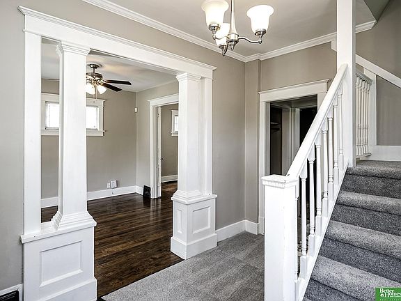 Situated in the heart of Historic Bemis Park, this 2-story blends timeless character with modern updates. It offers a grand front porch – perfect for relaxing or entertaining, updated doors, windows, bathrooms, kitchen, fixtures, attic insulation, & blinds. Inside, the main floor offers heaps of space: a bright & airy living room & a HUGE formal dining room with an adjacent half bath, refinished original hardwood floors complemented by tile accents. Oversized windows flood the space with natural light, creating a warm and inviting atmosphere. Upstairs, the primary bedroom is spacious, fit for any sized furniture. King bed? Yes, please. Two additional bedrooms are ideal for family, guests, or roommates. The kitchen is thoughtfully updated with ample cabinet space, granite countertops, tile flooring. Backyard is HUGE! Convenient new back parking pad. Five-Seven minutes from Creighton, UNO, UNMC, Downtown, Midtown Crossing, Blackstone, Dundee, and Benson...EVERYTHING!