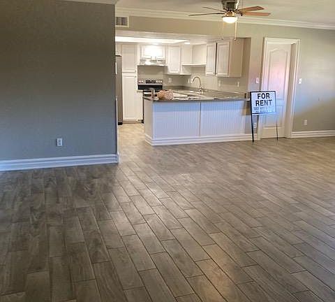 1,936 sq ft of living space includes, 6 bdrms (or 5 bdrms and office w/double glass pane doors), 2 full baths, kitchen with bar area, pantry, separate laundry room w/electric hookups for washer/dryer and new wash tub, living room w/fireplace, lots of storage space. Recently renovated: Freshly painted all interior spaces, new tile floor and carpeting throughout, resurfaced bathroom counter tops and updated shower heads and faucets, subway tile surround at fireplace, new water heater, new GE Refrigerator w/ice and water dispenser, new ceiling fans/lighting, new washtub, brick covered patio in rear yard including gravel and artificial turf , front brick walkway added in front yard, new concrete driveway. Kitchen also includes dishwasher, garbage disposal, electric range. Covered carport and separate entry through laundry room. Yearly lease. One month security deposit due at signing. Renter responsible for water and electric. No smoking allowed, no pets allowed. Residential property use only. Max occupancy 6. Applications must be completed for consideration.