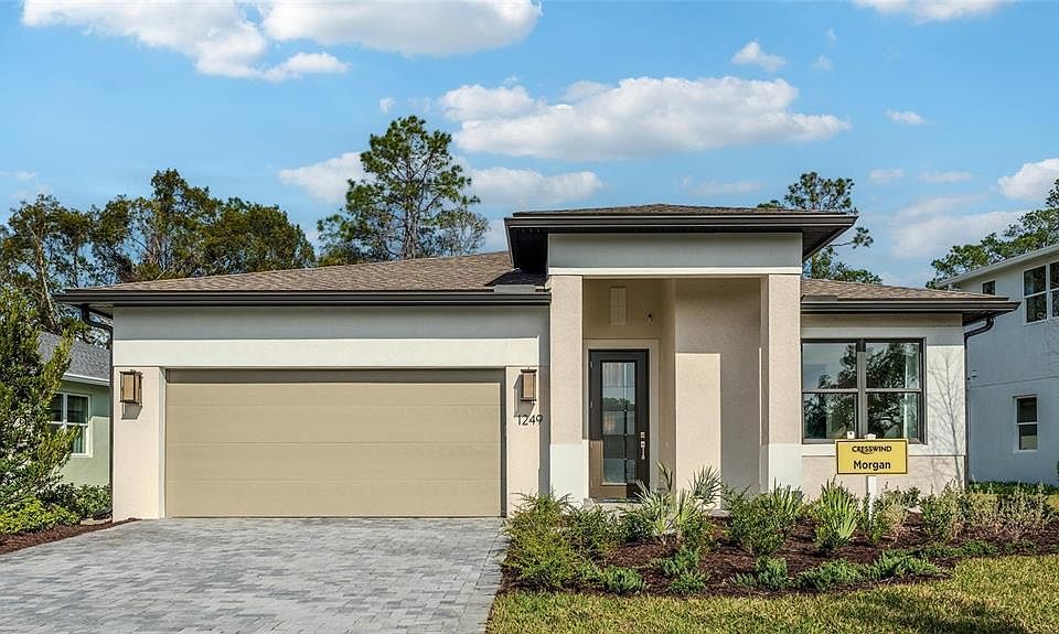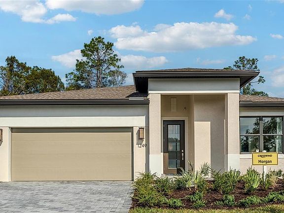 Pre-Construction. To be built. Discover Cresswind DeLand, a dynamic gated community just ten minutes from Historic Downtown DeLand, Florida, designed for active adults seeking vibrant, resort-style living. Residents enjoy exclusive amenities, including a lakeside clubhouse with panoramic views of Lake Winnemissett, pickleball and tennis courts, scenic walking trails, and both resort-style and resistance pools. The community features lively event spaces for relaxation and recreation, plus a state-of-the-art Cresswind SmartFit Training Center with EGYM technology for efficient, personalized workouts. A dedicated full-time Lifestyle Director curates a varied calendar of entertainment, wellness, and social activities, ensuring plenty of opportunities to connect and have fun. Ideally located near popular dining, shopping, and cultural attractions, Cresswind DeLand offers easy access to Main Street’s local art scene, unique boutiques, and nearby natural springs and parks. Homes are energy-efficient and designed for low-maintenance, pet-friendly living, making it easy to embrace the Florida lifestyle. Whether you’re interested in staying active, making new friends, or simply relaxing in comfort, Cresswind DeLand is the perfect blend of convenience, amenities, and community for those seeking the best in 55+ living. Flexibility is core to the layout this one-story, 3-Bedroom home. The centrally located island Kitchen anchors the Morgan, and the Great Room, Dining area and Flex space can serve both casual and formal living. One example is to utilize the Flex space as a formal Dining Room, allowing you to expand the Great Room and use the Dining area for cards, games or billiards. The secondary bedrooms are located in the front of the Morgan, with the Owner’s Suite comfortably tucked off the Great Room in the rear. Highlights of this sanctuary include a tray ceiling, split vanities, and wrap-around Walk-In Closet that gives you the option to add a door from your Closet directly into the Laundry. You can personalize the Morgan floorplan with structural options that include three different exterior choices; second-floor Bonus Room variations; Fitness/Study or Bedroom 4 in lieu of Flex; In-Law Suite or second Owner’s Suite in lieu of Flex & Bedroom 2; four-foot rear extension of home, and if you're looking for more stow space extend the Garage by 4'. Schedule your tour and contact a Cresswind Deland New Home Guide.