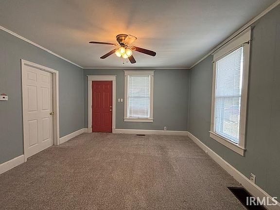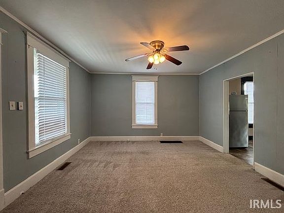 Priced in the $50's is this cute bungalow with covered front porch, nice sized living room, 2 bedrooms, eat-in kitchen with stove and refrigerator plus a large backyard, could make for nice off street parking.