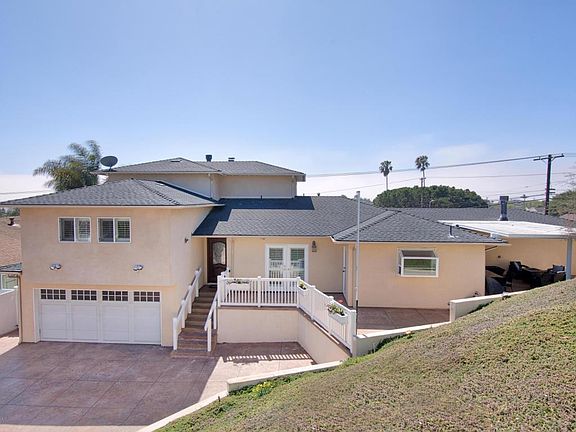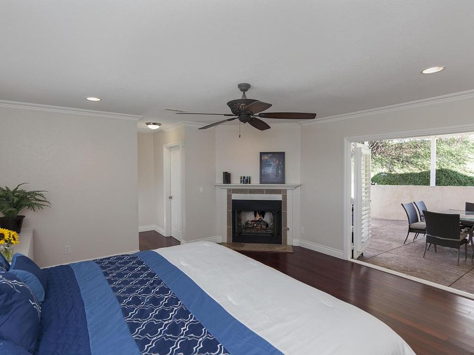 Ocean views & fireplaces abound in this gorgeous 4/3 gated private oasis! Accessible via PRIVATE ROAD only, backing up to 25th, not directly on 25th it sits on a hill above street level. Upon entering, you are greeted by a lavish open floor plan w/ gourmet kitchen, Sub Zero refrigerator & Wolf range, gleaming HW floors, granite counters, a massive center island & tons of storage. Use the built-in eating bar for a quick breakfast & adjacent formal dining area for family dinners. It's the perfect layout for entertaining & has a great flow. Down the hall is 1 of 2 master suites to luxuriate in, with ocean views, gas FP, spa bath, walk-in closet & French doors opening onto an outdoor dining/entertaining space. Head back towards the kitchen, the main hub of the home, to find 2 smaller bedrooms side by side w/ views, a laundry area & full bath. The formal living room, flooded by sunlight from corner windows that extend across 2 walls, sits at the other end of the main floor. Breezes, panoramic views & FP make this a coveted spot. Up a few stairs is the family room. Top of the stairs opens to a 2nd master suite w/gas FP, built-in bookshelf, huge soaking tub in ensuite bath, walk in closet & balcony w/ 180* forever views, on clear days you see Catalina.