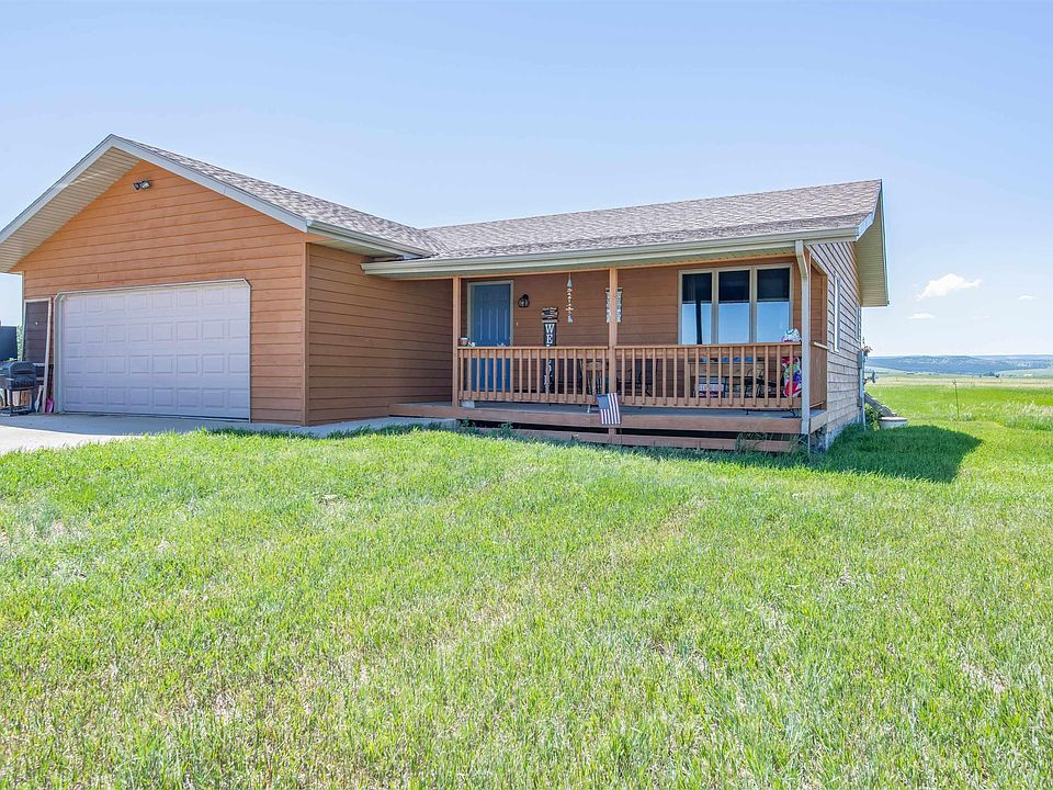 $30,000 price drop, motivated seller. Discover comfort and country living with this charming ranch-style home set on 19 beautiful acres! Incredible view of bear butte. Cozy living room with nice windows for natural light. Big master suite with master bathroom.This home features quality Anderson windows, 2x6 walls with R19 insulation, and cedar siding for a timeless appeal. Unfinished lower level ready for your vision to make it yours. Covered deck in the front and open deck in the back. This property is a dream for horse lovers, the property includes two hydrants and is perfectly suited for rotational grazing. Endless possibilities for your rural lifestyle!