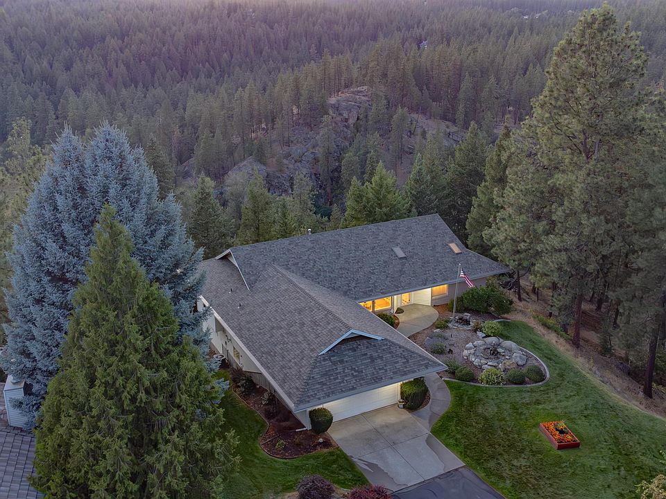 Walk to the Little Spokane River from this custom-built Arrowhead Point retreat, tucked at the end of a double cul-de-sac and backing protected state land. Zen river views and complete seclusion set the tone for everyday living. Designed for lifelong comfort, the main floor provides zero-step entry, extra-wide halls, laundry, and a generous primary suite with an en-suite bath. Cook in the efficient U-shaped kitchen with island cooktop and dual prep zones, enjoy bay-front dining, and gather in the 27 × 23 ft family room with built-in bar and liquor cabinet. The walk-out lower level adds a 31 × 24 ft flex room with egress, an oversized guest room, a second bedroom, and a lounge that opens to a patio pre-wired for a hot tub. Tailor-made built-ins, including a fold-away ironing board and clever storage niches, blend charm with daily practicality. Located in the coveted Mead School District with low HOA dues and pre-inspected for peace of mind.