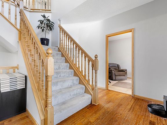 updated large ticket items such as roof and solar panels (2021), windows and doors (2023), and appliances in 2024. Main level showcases an open foyer with 2-story vaulted ceilings, beautiful wood flooring, living room with gas fireplace, private office, a mudroom with laundry, and a huge kitchen with center island and newer stainless steel appliances. Upper level offers 3 spacious bedrooms, including the primary with a private bathroom and a walk-in closet. Lower level has a 4th bedroom, utility room with tons of storage and a family room perfect for entertaining. This charming home sits on a sizable .43 acre lot with a massive backyard, nestled in a desirable cul-de-sac! The walkable Elk River neighborhood location is fantastic, just a short drive to restaurants, coffee, schools, shopping, parks, and more. Don't miss out on this amazing opportunity!