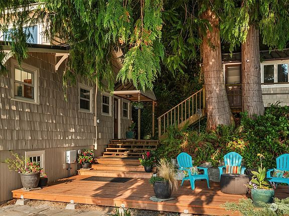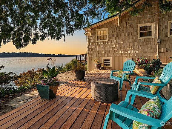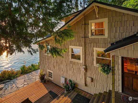 Experience the charm of this updated 2-bedroom beach cottage, perfectly situated on the west-facing shores of Colvos Passage. This home seamlessly blends classic features like an original stone fireplace and fir floors with modern updates, including new windows, interior French doors, and metal roof. The expansive decks offer breathtaking views, while the newly constructed 120' rock bulkhead enhances the waterfront appeal. Additional improvements include a new septic system, rebuilt bunkhouse with heat and electricity, and a new water heater. The double lot is graced with natural landscaping and towering trees, providing a serene backdrop for your island retreat.