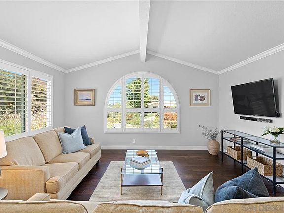 Exceptional Silver Saddle Ranch retreat with stunning views and outdoor living. Welcome to this beautifully appointed 4-bedroom, 2-bath home in the sought-after Silver Saddle Ranch community. Thoughtfully upgraded and designed for both comfort and style, this residence boasts warm hickory engineered wood flooring, elegant crown molding, and crisp white plantation shutters throughout. Double-pane white vinyl windows and sliders frame expansive views and bathe the interior in natural light. The gourmet kitchen is a chef’s dream, featuring a professional-grade Thermador six-burner gas range, a sleek Fisher & Paykel microwave/convection oven combo, and a striking central island perfect for meal prep or casual dining. Step outside to a backyard oasis ideal for entertaining or unwinding. A spacious covered patio and a separate sitting area with ample room for barbecues offer spectacular sunset views of the surrounding hills and mountains. The lush, mature landscaping includes colorful native plants and fruit-bearing citrus, avocado, and persimmon trees, creating a vibrant yet serene atmosphere. Both bathrooms are beautifully updated with light, modern tilework. The primary suite features dual vanities, a generous walk-in closet, and a large walk-in shower. Residents of Silver Saddle enjoy access to scenic walking trails that meander through the community’s peaceful, natural setting.