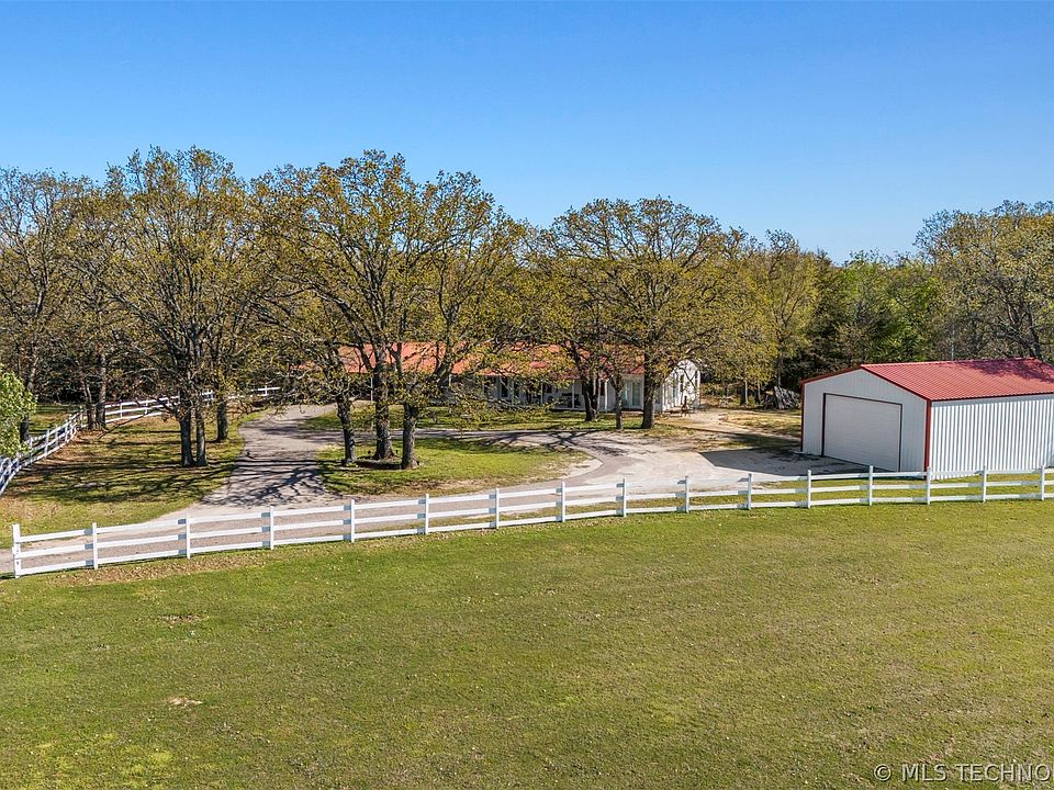 Introducing a charming single-family home nestled on 8.21 acres on the outskirts of Ada, located within the Byng School District. This spacious residence boasts 4 bedrooms and 3 baths, with 2 living areas encompassing 2510 square feet of comfortable living space, or use 2nd living area as a 5th bedroom. Key features include expansive shop buildings perfect for hobbies or storage, along with the 8.21 acres of land, offering endless possibilities for outdoor activities and potential development. Additionally, the property features a serene pond located to the north, providing a tranquil retreat for relaxation and enjoyment. Inside, wide halls and entryways characterize the home, accommodating ease of movement, while a handicap-accessible bath enhances accessibility and convenience. This property presents an exceptional opportunity for those seeking space, serenity, and accessibility. A picturesque driveway lined with mature trees creates a captivating tunneling effect, adding to the property's allure and enhancing its curb appeal. Discover the perfect blend of rural tranquility and modern living in this idyllic countryside retreat.