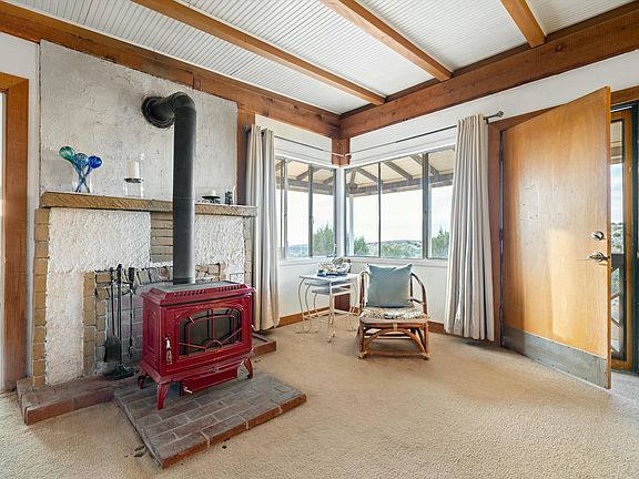 Discover a delightful off-grid bungalow nestled in the hills of the high desert! This charming hilltop home features 2 bedrooms and 3/4 bath, set on a spacious lot with breathtaking views of the San Gabriel Mountains. The property is adorned with lush desert vegetation, ensuring low-maintenance landscaping. Inside, the home radiates warmth with wooden beams gracing the ceilings throughout. The living area boasts a stunning Waterford wood-burning stove from Ireland, while the kitchen offers ample cabinet space and beautiful polished granite countertops. Large windows fill the space with natural light and showcase the picturesque views. Retreat to the expansive primary bedroom, painted in cheerful hues that enhance the home's brightness, complete with elegant plantation shutters. The second bedroom is a true gem, featuring its own fireplace and shelves perfect for a small library and a cozy nook for your bed—ideal for any reading enthusiast! Escape the hustle and bustle of city life and find tranquility in your own serene hideaway! Say goodbye to high electricity and water bills, as this home is powered by a high-quality paid-off solar system, with water sourced from its own well and propane for gas. The laundry room is conveniently located in a separate shed, and the property also includes an impressive partially underground building, perfect for storage or as a workshop. Prepare the grill and grab your favorite drink to savor all that nature has to offer on the covered patio—it's an ideal spot to soak in the enchanting desert sunrises and sunsets! Don't miss out on this charming home; it won't be available for long!