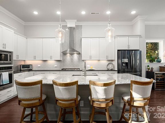 Beautifully appointed home in the highly sought-after Ballantyne area! This home features 11-foot ceilings and a stunning kitchen with leathered granite perimeter countertops, a large island ideal for entertaining, upgraded pull-out drawers, and crisp white cabinetry. The open floor plan is filled with natural light and includes surround sound wiring with speakers downstairs—perfect for gatherings. Enjoy outdoor living on the lighted paver patio with a built-in firepit, the screened porch, or the covered upstairs terrace accessible from the primary suite, bonus room, and secondary bedroom. The spacious primary suite offers a vaulted sitting area, a custom-built closet system with an upgraded fandelier, and a luxurious feel throughout. Additional highlights include a main-floor guest bedroom and designated office, hardwood floors throughout (except upstairs secondary bedrooms), a 3-car garage with secured storage and elevated shelving for extra storage, and a fenced yard. LAWN MAINTENANCE IS INCLUDED in the HOA, giving you more time to enjoy dining, shopping, and concerts in the nearby Ballantyne Bowl, plus easy access to 485 and other major conveniences. Zoned for top rated schools!