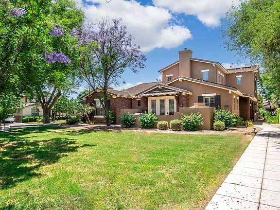 Fully owned solar which helps greatly with APS bills! This home is in the highly desired nieghborhood of Marley Park, located directly across from Heritage Club and Poolhouse! There are multiple neighborhood parks located within walking distance. Thie home has 4 bedroom, 2 bath, and 2 car garage. HOA fees are covered by us NOT tenant as well as monthly pest control. Landscaping is inlcuded in the HOA so the tenant has no landscaping to worry about. This property has been meticulously maintained. Large front pavered porch with porch swing. Pavered courtyard with custom-built fireplace that looks to a huge section of green grass. New wood tile on the main level along with new interior paint. 3-Way gas fireplace with brick accent seen from the kitchen, dining and family room. Chefs kitchen with staggered maple cabinets, professional grade Kitchenaid stainless steel appliances, gas cooktop. Large open great room. Primary bedroom is located on the first floor. Huge master bath with dual vanities, separate walk in shower & jetted tub. Large master closet. Three additional bedrooms upstairs with full bath and dual sinks. Vaulted ceilings accent this spacious and open floor plan. Plenty of storage and a utility sink in laundry room. Refrigerator, washer and dryer stay with the home and are all just over 2 years old. This place has location location locatin