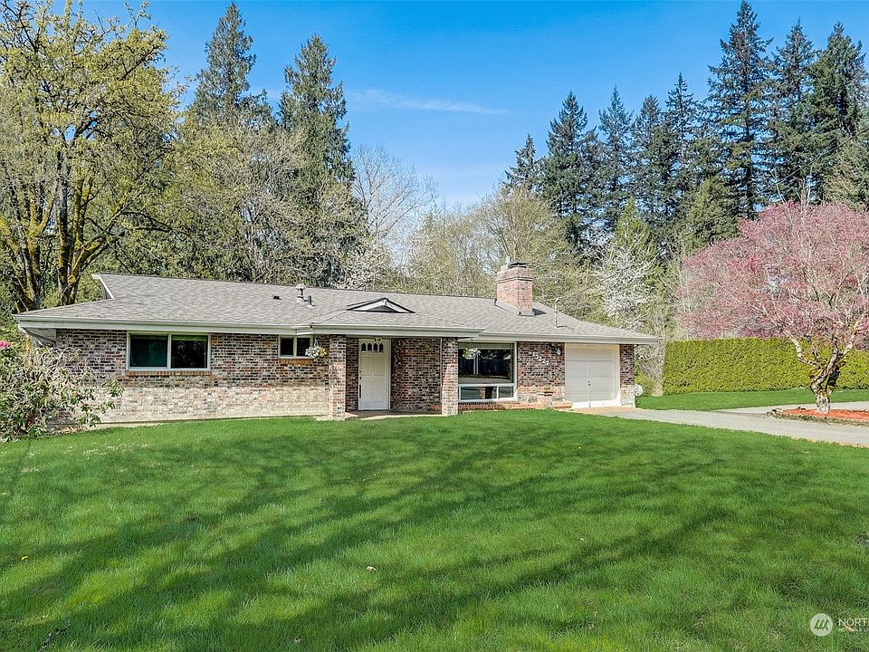 Welcome to a one-of-a-kind brick rambler with a full daylight basement, offering endless possibilities for creative updates. This home awaits your personal touch. The main level features an inviting open floor plan with a half wall and vertical beams separating the living and dining areas, all under a cathedral wood ceiling. You'll find a kitchen and fireplace on both levels, along with two bedrooms upstairs and two downstairs. Updated furnace, water heater, and gas fireplace. The roof is in great condition. The backyard creates a beautiful and tranquil retreat. Situated in a quiet area yet close to amenities, and within the coveted Issaquah School District. Don't miss the opportunity to make this unique property your own.