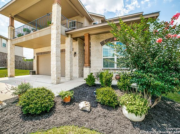 Huge backyard (0.31 acre) with a great view! 2876 Sqft size provides you plenty of the space. 4 beds plus media room, 3 and a half bath. It is located in desirable Alamo Ranch! The balcony provides an excellent view of firework shows at Sea World! The first-floor master suite is a spacious retreat. Upstairs you will enjoy the game room, media room equipped with surround sound, 3 bedrooms, and 2 full baths! Excellent location within minutes of shopping, NISD schools, and access to loop 1604 & HWY 151. LG was