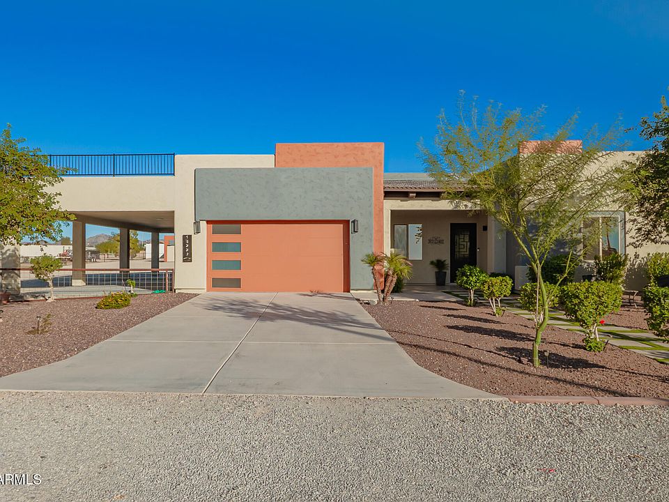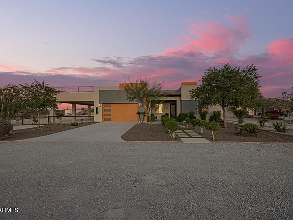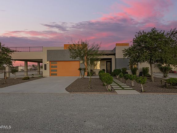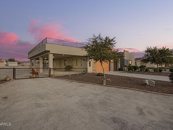 Discover this one-of-a-kind custom home offering the perfect blend of comfort, craftsmanship, and Arizona outdoor living. Featuring 4 spacious bedrooms, 3 bathrooms, and a 2-car garage, this property provides plenty of room to live, entertain, and enjoy the country lifestyle — all with no HOA and full horse privilege. Step inside to find a luxurious main bedroom retreat complete with a cozy sitting area, a cedar wood walk-in closet, and a beautiful bathroom showcasing a jetted tub, double sinks, private toilet room, and stunning tile work. A junior suite offers privacy with its own bathroom and cedar wood closet, while all additional bedrooms also feature cedar-lined closets.The custom kitchen is a chef's dream boasting elegant cabinetry, a large island, and stainless steel appliances, seamlessly flowing into the living area enhanced by a built-in entertainment center and custom desk workspace. Outdoors, enjoy Arizona living at its finest! The spacious backyard includes a swimming pool, firepit area, two exterior bathrooms, and a BBQ area ideal for entertaining family and friends. There's even a small studio currently set up as a nail salon, equipped with kitchen cabinets and a mini-split A/C unit, perfect for a home business or guest space. Additional highlights include a 6-car carport with a spiral staircase leading to the rooftop deck, an extra 1-car garage, storage room, and RV hookup all situated on over 1.25 acres of fenced property with endless possibilities. Enjoy the serenity of country living while still being close to Buckeye amenities. This home truly has it all space, beauty, and versatility.