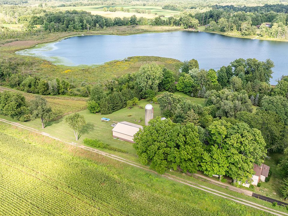 The absolutely DREAMY 18 Acre Waterfront Estate, situated on Skyhawk Lake near Marcellus (a private lake), with a beautiful older farmhouse on a massive amount of private lake frontage!! This vintage farmhouse has been extremely well maintained for the entire 35 years that the current owners have lived there and serious pride of ownership is glaring! The outside grounds are breathtaking! The beautiful home offers over 2100 sq. ft with 4 bedrooms, 2 full baths, along with a large dry basement for storage, a newer beautiful and large 60 x 40 pole building with loft, new well, new metal roof, new septic, newer furnace & central air, new windows, and so much more!! From the home all you see if nature and no homes on any side!! The long newly paved driveway brings you back into your own private paradise that you'll never want to leave!! There is plenty of room for another home, guesthouse or your own private castle out back!! Don't wait to come see this place while its still available!