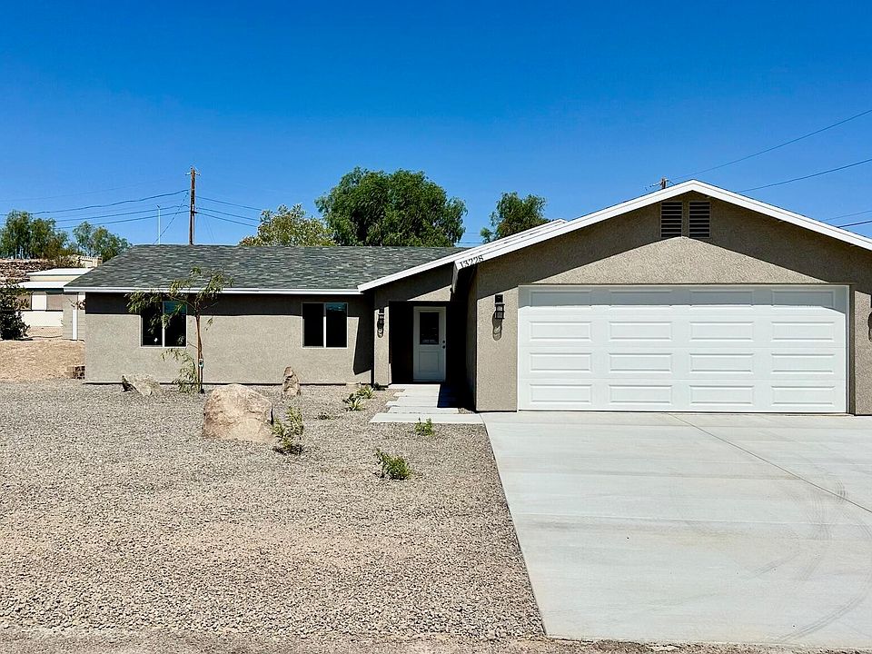 Welcome to your dream home in Topock, Arizona! This new site-built house offers the perfect blend of modern luxury and comfort, conveniently located just a 5-minute drive from nearest Marina and a scenic 30-minute drive from Lake Havasu. 1435 s f living area. 3 bedrooms, 2 bathrooms. 539 s f attached finished garage. Patio. Porch. Carpet in bedrooms, Luxury Vinyl Plank in living areas. Quartz counter tops. Spacious and inviting living areas perfect for entertaining guests or relaxing with family. 15' RV parking space ideal for outdoor enthusiasts or those with Motor homes. Close proximity to Colorado river, Lake Havasu, BLM lands offer endless opportunities for water activities and outdoor adventure! Don't miss the opportunity to own a beautiful new home! No HOA!