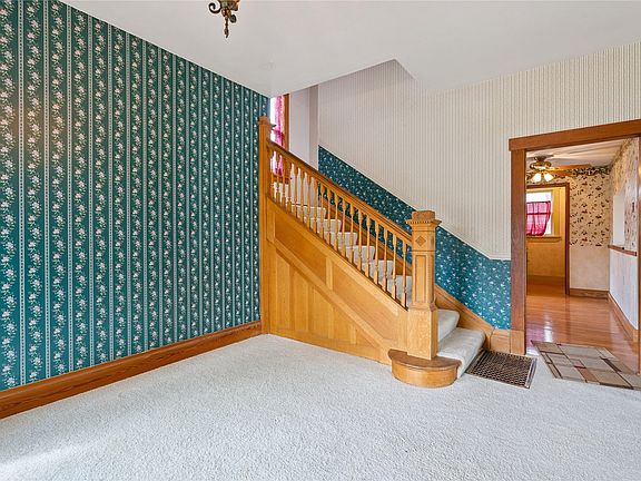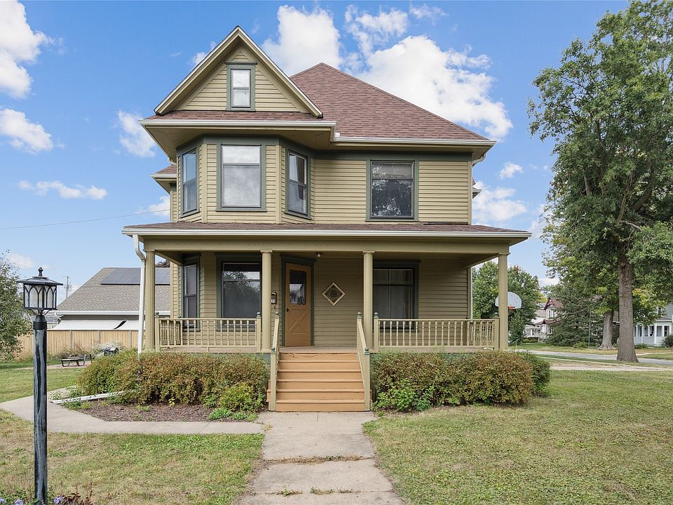 This charming four-square residence boasts 1,892 square feet of living space. The main level features a welcoming foyer, a living room, a formal dining area, and a kitchen equipped with generous counter space and a full set of appliances. Adjacent to the kitchen is a convenient pantry. On the second floor, you'll find three bedrooms and a full bathroom. There's also a spacious unfinished attic accessible by stairs. The basement, while unfinished, houses the washer and dryer and has plumbing ready for a second bathroom. An inviting front porch enhances the home's curb appeal. Recent updates include a new roof (2023), gutters (2020), fresh exterior paint (2023), and a recently tuckpointed foundation. The furnace and central AC were replaced in 2024, and a new curb stop for the water line was installed in 2022. The home features combination storm windows added in 2023. A one-stall garage with a non-functional door also includes an EV charging station. On the west side, there's a patio adorned with prairie plants and grasses. The location is ideal, just four blocks from Grinnell's downtown and one block from Grinnell College. Schedule a visit today!