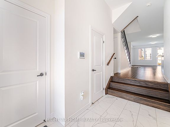 Beautifully upgraded, park-facing 2-storey townhouse on a deep lot with no sidewalk, offering extra parking and excellent curb appeal! Open-concept layout with 9' ceilings, hardwood floors, upgraded tiles, and a hardwood staircase. Features 2,215 sq. ft. of living space with 1,701 sq. ft. above grade & 514 sq. ft. builder-finished basement. Modern kitchen with quartz countertops, breakfast bar, and stylish backsplash. Bright Great Room with walk-out to backyard. Spacious foyer with garage entry and direct backyard access through the garage. Primary bedroom boasts a 4-pc ensuite and walk-in closet. Builder-finished basement provides additional living space, ideal for a family room, office, recreation area, or guest suite with full washroom perfect for growing families. Situated in a sought-after neighborhood close to schools, shopping, highways, public transit, parks, and more. A perfect blend of style, space, and convenience just move in and enjoy!