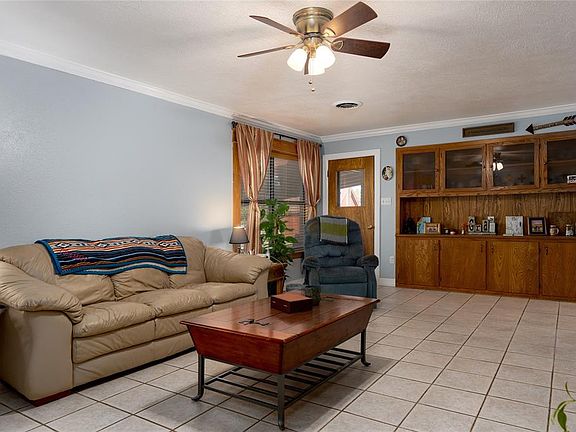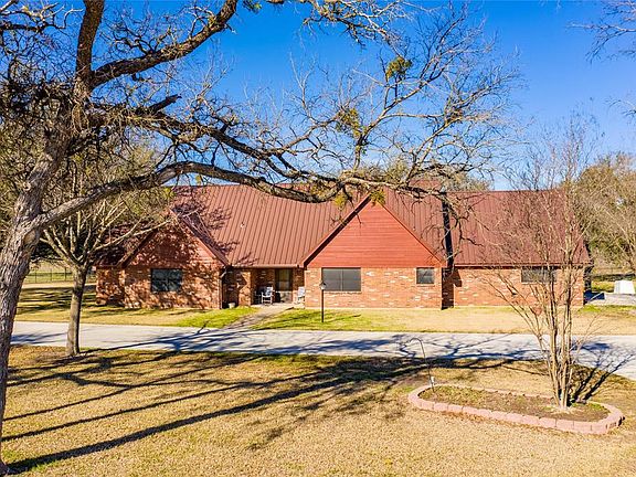 Beautiful 4 Br 2 Ba brick home with fireplace, ceramic tile floors, stain concrete floor in den area, laminate wood floors in 3 bedrooms, carpet in the bedroom upstairs. The home has lots of builtin cabinets for storage, lots of storage in walk-in attic, large master bedroom with walk-in closet , large back yard with mature trees, tree house with electricity and deck, storage building. This home has been well maintained and is approx. 2 miles from the school in Evant, TX.