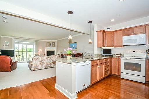 EMERALD COURT ESTATES... AWARD WINNING ACTIVE OVER 55+ COMMUNITY...MAGNOLIA BUILDING Penthouse Luxury garden style 1 bedroom 1 1/2 bath unit on 3nd floor. Freshly painted in neutral warm tones, new carpet, & crown moldings. Open spacious floor plan offers a gas/log fireplace living room with slider out to a covered balcony that looks out to spectacular sunsets and a lovely view, formal/dining room or den, granite kitchen and custom cabinets, with breakfast bar. KINGSIZE MASTER with walk in closet and a tiled full bath. Elevator building, heated garage under, and owner storage on the same level as unit Great clubhouse and 24 hour exercise room, lots of activities, low, utility bills and condo fee...this is a great way to live a carefree life style. Convenient location, close to shopping and highway access. Homes at Emerald Court rarely come on the market and sell very quickly so do not hesitate to make an appointment today.