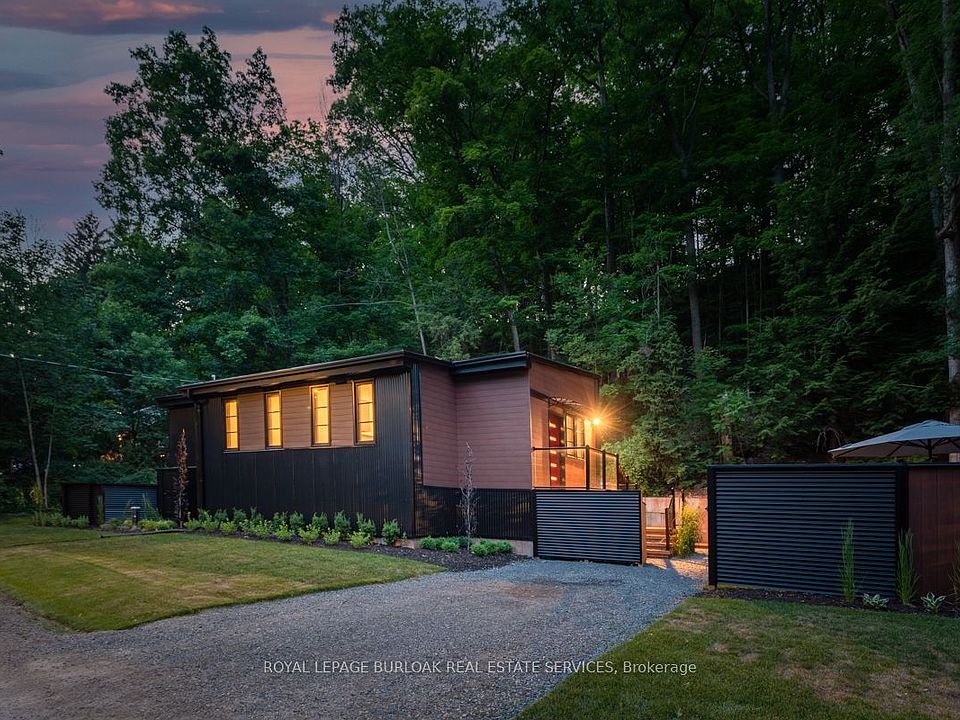 Beautifully built custom home on Burlington's sanctuary street, Hidden Valley Rd. Live as one with nature as you overlook the picturesque view out of your floor to ceiling window wall. Soaring ceilings and pot lights throughout, vinyl flooring, and stainless steel appliances. Stunning yard abutting the valley, lush trees surrounding the property. Two driveways with parking for 4 vehicles, and detached garage. Walk down the street and enjoy stunning trails along the creek, which connects to the Bruce Trail. Close to Aldershot Go, easy access to major highways and a close drive to Downtown Burlington.