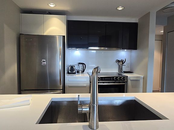 Welcome to Pacific Point II, a beautifully renovated and fully furnished residence by Bosa Development (2013), ideally located in the heart of Yaletown. This bright and spacious south-facing one-bedroom plus den home offers over 730 sq. ft. of refined living space, featuring floor-to-ceiling windows that capture stunning False Creek views.Enjoy a modern open-concept layout with a gourmet kitchen showcasing stone countertops and premium appliances, an oversized bedroom with a spa-inspired ensuite, and the convenience of in-suite laundry and secured parking. Pacific Point II seamlessly blends Yaletown's historic charm with modern sophistication, offering an exceptional turnkey living experience in one of Vancouver's most desirable waterfront communities.