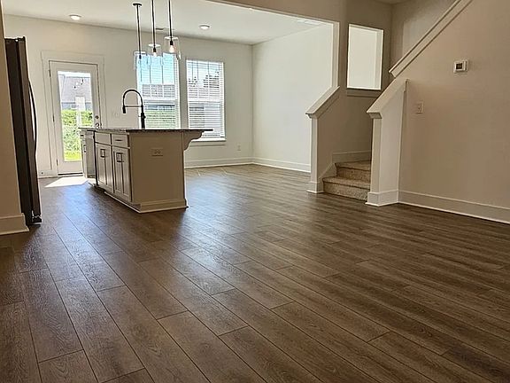 Enjoy an open-concept layout that seamlessly connects the living, dining, and kitchen areas. The gourmet kitchen includes stainless steel appliances, quartz countertops, a large 9-foot island, tile backsplash, and sleek gray cabinetry. The end-unit design allows for extra natural light throughout the main floor, creating a bright and inviting atmosphere.