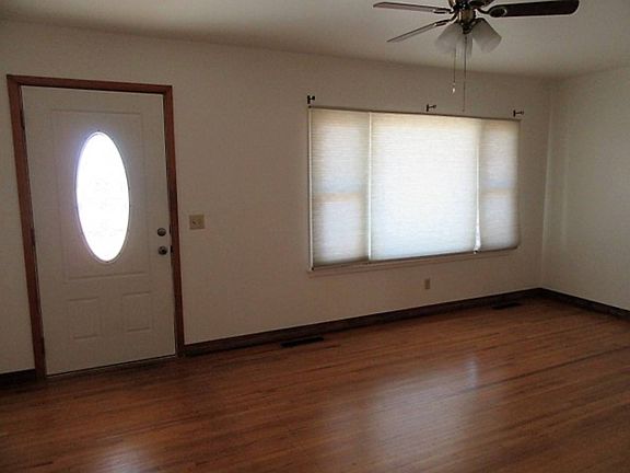 Cute move-in ready ranchette! Beautiful hardwood floors! This home has a spacious living room, 2 bedrooms, an open kitchen with plenty of storage and a dining area. The full bath features a tub and a separate shower as well as a laundry area. Newer windows and paint throughout. The exterior features a fenced in backyard with 2 storage buildings and a deck. Central h/a. Nice quiet location. Call today to schedule your showing!