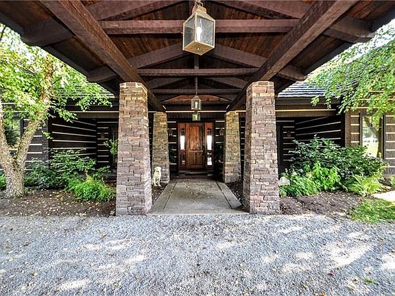 Masterfully designed estate home situated on 63 rolling acres just outside of historic Ligonier. Hand hewn Georgia pine logs soar two stories high to greet you to this one of a kind private retreat. Picturesque views calm your senses from every room. Escape to the country, recharge, relax and recuperate. This property is home to nature's finest, wildlife abounds and its ready for your horses, dogs or other furry friends. Darling 6 stall barn and fenced pastures are freshly upgraded and beautifully maintained. Plenty of storage for mountain vehicles, hunting or fishing gear and more. If relaxation is your style, the sparkling pool with hot tub awaits. Open concept floorplan, large porches with mountain views, huge gas fire pit, 3 grand stone fireplaces, gourmet chef's island kitchen with pizza oven, oversized wine cellar and huge wet bar with entertainment area, grand master suite. Freshly remodeled 3 bedroom guest cabin. 1 hour east of Pittsburgh, 3 hour drive from D.C.