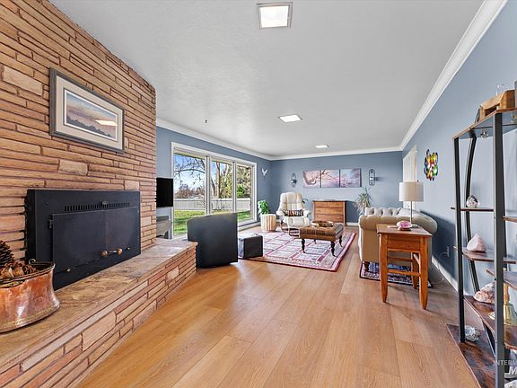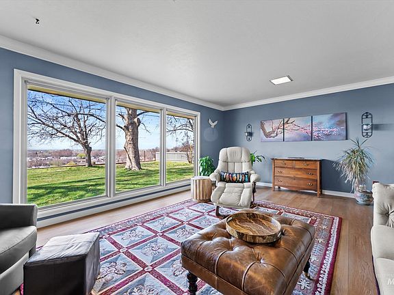 Experience breathtaking vistas of the Owyhee Mountains, stunning sunsets, and the graceful flight of birds of prey. This meticulously maintained mid-century single-level residence is situated in the highly sought-after Canyon Hill subdivision in Caldwell, Idaho. This welcoming home features new carpeting, fresh interior and exterior paint, and a recently installed roof and furnace, all while preserving its original charm. Nestled on over a third of an acre, the property boasts a backyard adorned with mature trees that offer exceptional shade during the warm summer months. The oversized two-car garage provides ample space for vehicles and recreational equipment, accommodating various hobbies and interests. With three spacious bedrooms and a dedicated office, this home offers the versatility to meet all your needs. Enjoy tons of built-in's and storage. If you appreciate a residence rich in character with magnificent views, this property is the perfect fit for you.