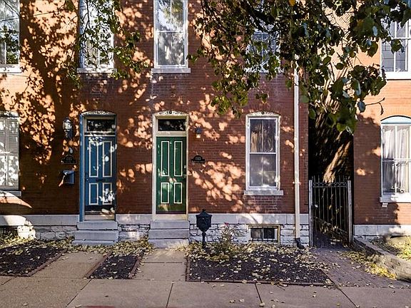 Welcome to this stunning Soulard gem! Built in 1917, this three-story home blends historic character with modern updates, offering an ideal primary residence or investment opportunity. From the moment you arrive, the classic curb appeal radiates the unmistakable Soulard charm. Step inside to soaring ceilings accented by recessed lighting, an exposed brick wall, and gleaming original hardwood floors. The spacious living room is filled with natural light and flows seamlessly into the dining area—perfect for entertaining. The main level also features a half bath and an upgraded kitchen complete with white cabinetry, solid-surface countertops, stainless steel appliances, and direct access to the fully fenced backyard. Upstairs, the second floor offers two bedrooms and a full bath. The first bedroom boasts a generous closet and private access to the bathroom, making it an excellent option for a primary suite. The second bedroom opens to a charming balcony overlooking the backyard. The full bath includes a beautifully tiled walk-in shower and dual access from the hallway and bedroom.