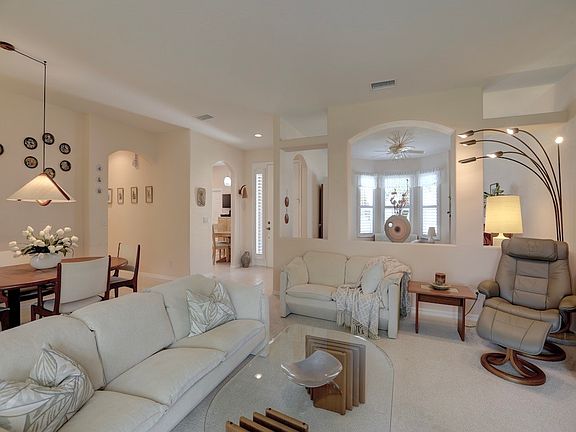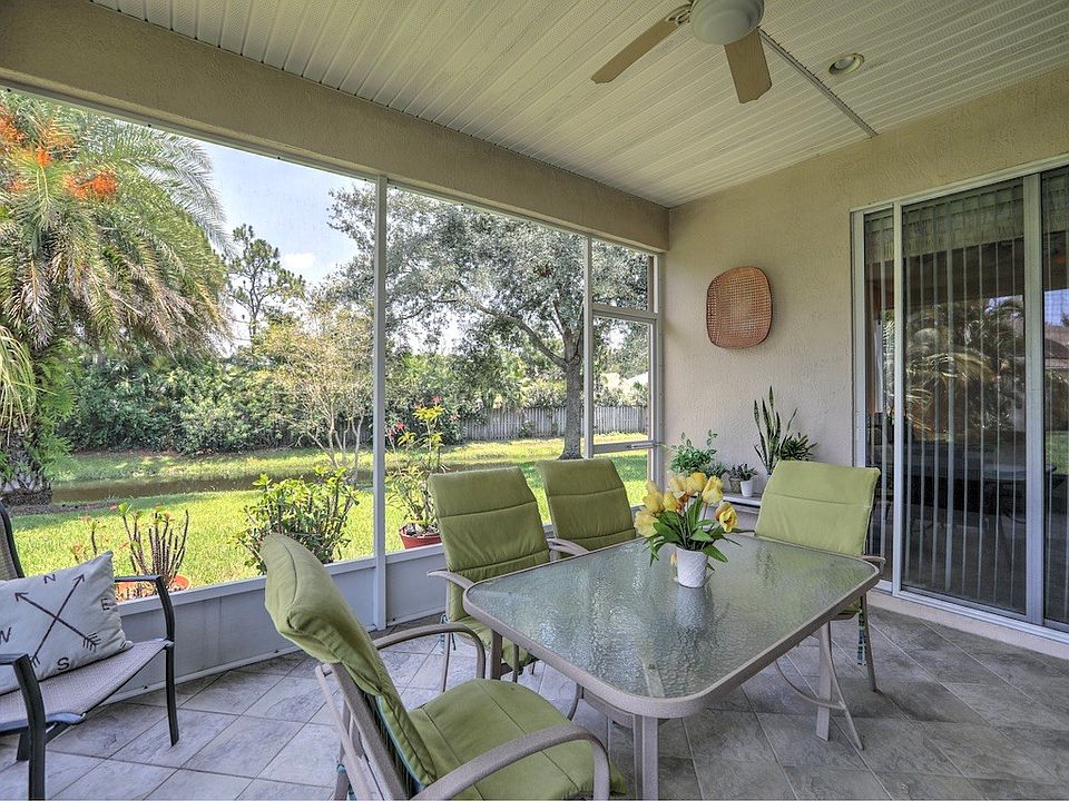 Beautiful, well-maintained 1-owner home with great curb appeal & professional landscaping. Step inside to discover arched doorways, plantation shutters, bay windows & timeless kitchen with white cabinets, Corian counters & pull-out cabinets. Open concept living/dining rm, plus den. Luxurious primary suite with 2 walk-in closets, spacious en-suite bath has double sinks, tiled shower w/bench & loads of cabinets. A tranquil screened porch overlooks a private backyard and lake. Low HOA includes a community pool, fitness rm, tennis & more. Furniture negotiable! Rm sizes approx & subject to error.