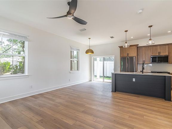 Welcome to your new construction townhome in one of Orlando’s most desirable areas - MILLS 50 District. This 3 bed 2.5 bath townhome spans 1756 sf with a clean open floor plan that includes calypso oak luxury vinyl plank through the entire home. The kitchen has beautiful brown cabinets with upgraded lighting, samsung black slate appliances, large white sink, quartz backsplash, an island with quartz plus shiplap that can fit 3 barstools, a and half bath with wood cabinet for storage. Large private fenced yard with gate & storage room off of porch outside. The porch off of the kitchen offers the perfect place for a grill or to let some fresh air in with your sliding glass door. Extra private brick parking spot for this townhome only. The home offers ample windows providing great lighting at all times of the day. Upstairs offers an oversized primary bedroom with a large shower - double sink and walk in closet with built in wood shelf. The other two upstairs bedrooms upstairs share a detached bathroom with a bathtub. You will also find a walk in laundry room with a large window and storage closet. The home includes blinds for every window. An attached two car smart garage with large window is located off the kitchen. Red brick pavers welcome you home. There is NO HOA. Buy and rent this turn key townhome with high demand and low inventory. Walk to your favorite restaurants and late night spots just feet away (Hawkers, Tori Tori, Wally’s, Plantees, Pigza, First Watch, Santiagos Bodega & So many more new options to come in 2025) Both Audubon Park K-8 School Zone (1.5 mile or 5 min drive)and Lake Highland Prep K-12 (both within a mile and less than a 5 minute drive). AdventHealth (1.5 mile 5 minute drive) No highway needed to get to Downtown Orlando, Baldwin Park, Winter Park, and College Park (All are less then 3 miles or a 10 minute drive away). You never have to leave or go far from home when you live on Weber Street 32803. This townhome is surrounded by single family homes giving it a more neighborhood residential feel. Located in between N Orlando Ave & N Fern Creek Ave. This opportunity won’t last long. Turn key and move in ready.