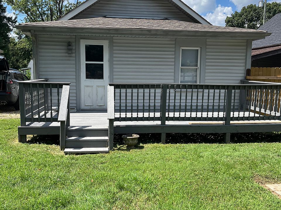 2 bedroom ( possibly 3) could turn extra room into a bedroom or Office. 1 bath spacious home. Deep fenced in backyard. Porch deck extends the length of the house, Washer and Dryer hookups. Move in Ready