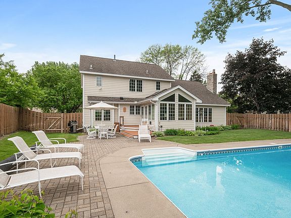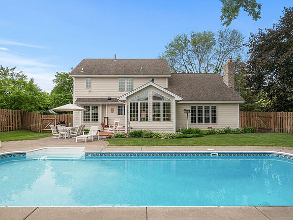 Welcome home to this meticulously maintained home nestled in the sought after Royal Oaks neighborhood. The open main floor features a lovely kitchen with Cambria countertops, informal dining area, and cozy living room. Completing the main floor is a formal dining room, office/den, and a sun filled 4-season porch which overlooks the stunning backyard oasis. The upstairs hosts 3 bedrooms including the primary suite with walk-in closet and nicely updated private bathroom. The lower-level family room is the perfect spot for movie nights. Skip the cabin traffic and enjoy Minnesota summers in your own backyard getaway, complete with in-ground pool, privacy fence, and beautiful perennial gardens. Two car garage with additional 8x7 storage area. Located in the award-winning Mounds View School district, near parks and trails, this home is a must see!