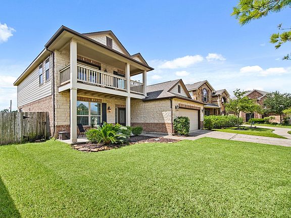 Welcome to this beautifully maintained 4-bedroom, 3.5-bath, 2-story home in the desirable Lakes of Savannah community. Built in 2015, this 2,680 sq ft property features an open-concept floorplan designed for comfort and functionality. The primary suite downstairs offers privacy with a spa-like bath and walk-in closet. Upstairs, you’ll find three spacious bedrooms, two full baths, and a large game room—perfect for entertaining or relaxing. A unique chalkboard wall adds a creative touch. The kitchen boasts granite countertops, SS appliances, and abundant storage. Additional highlights include tile flooring on the main level, plush carpet upstairs, and a washer, dryer, and refrigerator included. Outdoors, enjoy a covered back patio, fully fenced yard, and charming second-floor porch. Conveniently located near Hwy 288 and Beltway 8 with easy access to the Medical Center, Downtown, and Pearland. Zoned to Alvin ISD. Move-in ready and waiting for you!