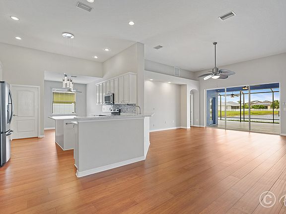 Step outside to the oversized screened and covered lanai, where you can unwind while taking in the serene views of the peaceful pond. The outdoor space is perfect for relaxing or entertaining guests year-round.