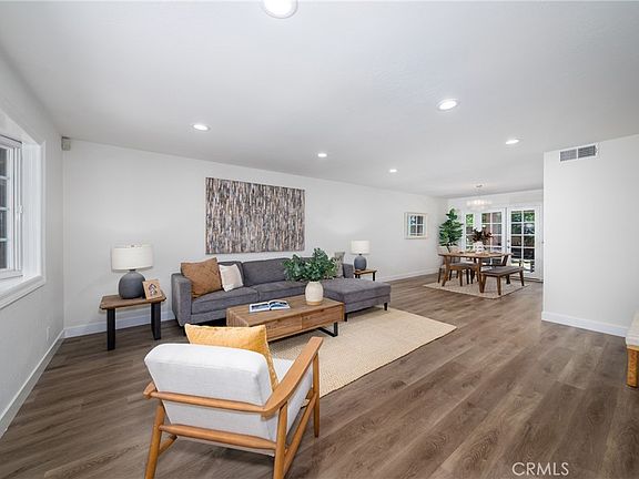 This divine, fully remodeled property is located in a highly desired neighborhood, conveniently close to high-rated schools, parks and freeways. A beautiful double entry door leads you inside of this gorgeous turnkey property. Upon entry you’ll notice a high vaulted ceiling and elegant laminate flooring throughout. To your left is a spacious living room with a charming bay window, followed by the dining room which adorns an alluring chandelier and French doors that offer access to the backyard. Next, you’ll find the stunning kitchen that has been upgraded with quartz countertops, a lovely subway tile backsplash, all new appliances, and ample storage space. The kitchen opens to a huge family room featuring a cozy fireplace with exquisite stonework and another set of French doors with backyard access. You’ll find the first of 2 master suites downstairs with double door entry, wall built-ins with vast amounts of storage, a big closet, and its own access to the downstairs bathroom. This full bathroom has been tastefully upgraded with a ravishingly tiled shower with pebbled floor, quartz countertops, new lighting and fixtures. Heading up the wide-open staircase, you’ll find the second master suite with double door entry, a large closet with 2 separate access points and built-ins for convenient storage. Attached is its own irresistible bathroom that has been upgraded with elegant tile floors, quartz countertops, a porcelain tiled shower with pebbled floor, dual sinks, new lighting and fixtures. Heading down the hall you’ll find 2 remaining well-sized bedrooms, a linen closet, and a roomy guest bathroom that has been upgraded with beautiful tile flooring, a subway tiled shower with tub, quartz countertops, dual sinks, new lighting and fixtures. Recessed lighting has been installed throughout the home and it has been freshly painted on the interior and exterior. The backyard has beautiful fruit trees and a covered patio, great for entertaining outdoors! You’ll find comfort and peace of mind when buying this home, come see it today!