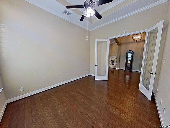 Stunning one-story home located in a quiet, gated community with exceptional designer upgrades throughout. This open-concept floor plan features rich wood-look tile flooring, abundant natural light, and a striking stone fireplace with hearth and mantel. The gourmet kitchen offers a large granite island with bar seating, 42" cabinets, stainless steel appliances, a gas cooktop, walk-in pantry, and a convenient built-in workstation-ideal for remote work or meal planning. A versatile study off the entry can serve as a home office, gym, or guest room. The enclosed patio with natural gas hookup extends the living area, providing the perfect setting for entertaining, relaxation or even a library/reading room. The spacious primary suite includes dual vanities, an oversized walk-in shower, and a jetted garden tub. Additional features include a water softener and filtration system, irrigation system, natural gas heat, and a utility room conveniently located near the kitchen. Thoughtful upgrades and quality finishes throughout make this home a perfect blend of style, comfort, and functionality. Ask about closing cost assistance. Realtor is related to seller.