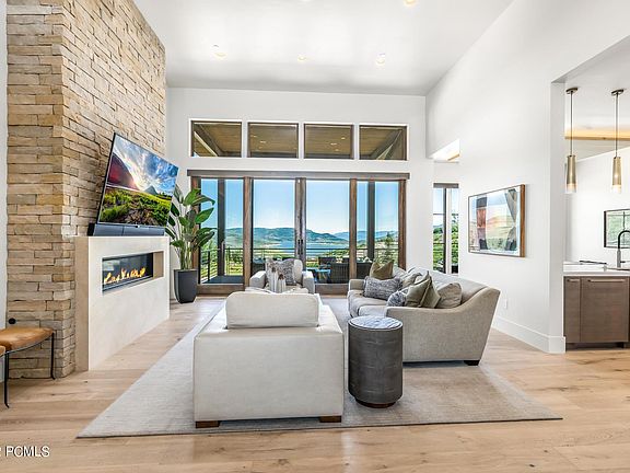 This mountain contemporary home is located in the prestigious gated community of Deer Vista. With jaw-dropping views of the Jordanelle Reservoir and Mayflower ski slopes, this home is perfect for the outdoor enthusiast. Whether you're fishing, biking, or hiking in the summer or snowmobiling, skiing, or tubing in the winter, this home is ideally located. The contemporary design and well-thought out floor plan make this home feel spacious and welcoming. With five bedrooms - all with ensuite bathrooms - there's plenty of room for friends and family. You'll love spending evenings around the outdoor firepit or enjoying a summer BBQ on the patio while taking in the incredible view. The home has been meticulously cared for and sits on a 1.8 acre lot. There is also a heated 3 car garage, including an RV garage door, for all your toys. This home was previously featured in the UT Parade of Homes - don't miss your chance to own it.