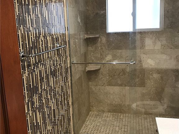Totally remodel, large kitchen with granite countertops, kitchen backsplash design tiles up to the ceiling, lot of cabinets, with stainless steel appliances, hardwood floors in the bedrooms, ceramic heated floors throughout the house, with AC and a large deck a large back yard. Ready to move in condition