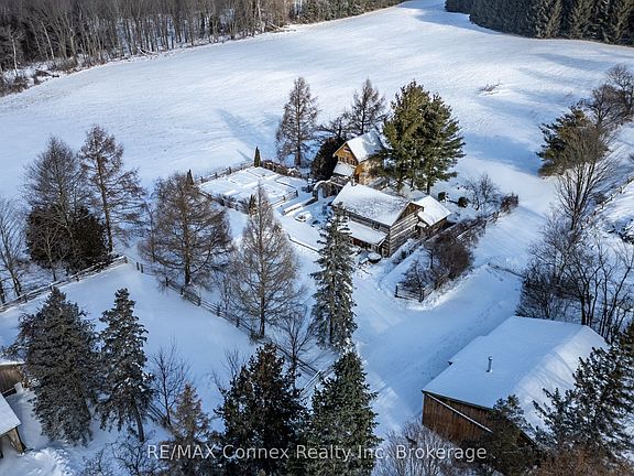 THIS BEAUTIFUL COUNTRY RETREAT AWAITS YOU AND YOUR FAMILY! Unique, enchanting and enriched with the natural beauty of the rolling landscape and an abundance of history, this country estate reveals itself in a series of wonderful surprises. The property is not only a picturesque 150 Acres with a 4867 square foot, two-storey beautifully proportioned home, it also features two mid-nineteenth-century log cabins, an in-ground pool with a private pool house, with sauna, pond, apple and pear orchard, barn with horse stalls and hay loft, large drive shed with extensive workshop and one of Ontario's few existing stone silos converted into an artist's studio with a deck overlooking raised gardens and a stunning view of the farm. You and your family will live on your own retreat. Join us for a walk down the majestic tree-lined laneway and open your eyes to the wonder that befalls you. The house has 4+1 bedrooms including a full guest suite with bed and sitting room with direct access to the garden and a 3pc bathroom. In the finished basement you will relax in the movie theatre and games room. The generous office space is full of light. The property encompasses aces of mature bush and managed reforestation, wetlands, walking trails, 40 acres of arable land and a seven-acre revenue producing solar panel installation. This historical family estate has been lovingly cared for by three families since 1896 when the settlers built a new house on the present site. Over the decades the house has been expanded and modernized, combining heritage with sustainability.