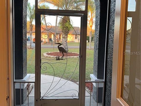 Custom built 3 bedroom 2 bath 2 car garage with screened in above ground pool Perfectly built into a huge deck with fenced area perfect for entertaining or just enjoying the Florida lifestyle. High ceilings, tile throughout, sliders to pool from the living room, eat in kitchen, dining area, inside laundry room added on to the back of the home for additional storage with washer dryer and storage cabinets with room for a folding table. Master suite with walk in closet and master bath with walk in shower. Two other bedrooms have built in corner shelf, great closets, ceiling fans and a full bathroom with a bathtub/shower. Roomy 2 car garage with remote entry, wet sink, side door to side yard. Outdoors features one large screened in area overlooking the pool and another separate screened room overlooking the fenced area of the yard. Seller has two conflicting sink hole reports - see attached documents -house is fully insurable and mortgageable as per State Farm insurance agency. New pictures are coming soon after pool is replaced, Exterior and interior painted 2021, deck stained, screen replaced, new ceiling fans. Room Measurements are approximate buyer must verify measurements.