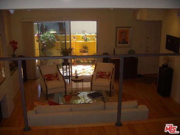 Exquisite details and stunningly remodeled townhome with extended combo family/dining area creates a spacious entertaining 'flow'. So many features, including hardwood flooring, beautifully redone baths with glass tiles, cook's kitchen, living room with fireplace and patio, a private 3 car attached garage w/storage. The sunny master with own balcony is complete with soaring ceiling, mirrored wardrobe and built-in furniture. The second bedroom has been modified as a perfect office with built-in furniture, and looks into the open atrium. Added feature is the location of this townhome, with a view out the front to the pool area and a view out the back into the neighboring complex's pool -- this home does not look into a neighbor's.