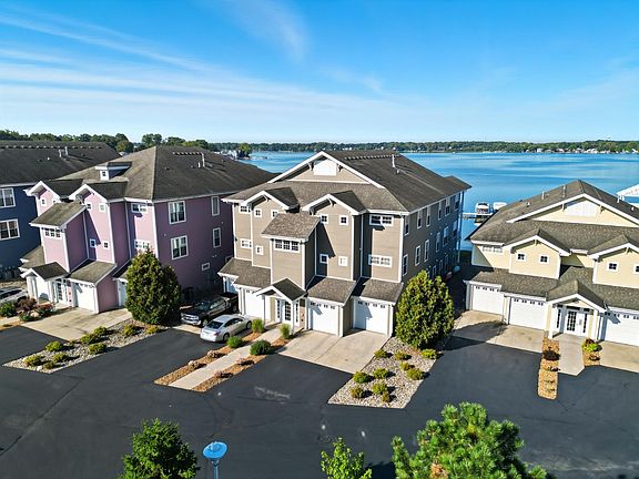 LAKE LIFE is CALLING your name! Be ready to be IMPRESSED by this second-story LUXURY condo situated on the beautiful shores of the highly desirable Cedar Lake. This unit offers 3 BEDS, 2 baths, & nearly 2,000 sq. ft. of stunning space. Walking in, you will immediately notice the TALL ceilings, OPEN floor plan, fresh paint, & meticulously maintained condition. The living, dining, & kitchen area is expansive, w/ plenty of room to ENTERTAIN, relax, & savor breathtaking LAKEFRONT VIEWS. The living room also has a cozy FIREPLACE. Kitchen features sleek GRANITE counters, ample cabinetry, stainless steel appliances, & a generously sized ISLAND for extra gathering space. The oversized primary bedroom can be your personal sanctuary & has its own ensuite w/ a whirlpool TUB, walk-in shower, double vanities, & WALK-IN closet. The other bedrooms are spacious w/ double-door closets & extra built-in storage shelving. A second FULL bath & convenient LAUNDRY room complete the interior. Enjoy morning coffee or catch the evening sunsets on your secluded, covered BALCONY that has unobstructed views of the lake. Sunset Harbor is a VIBRANT, sought-after community w/ GATED entry, where residents enjoy the benefit of a true MAINTENANCE-FREE lifestyle & access to amenities like the in-ground heated POOL, private BEACH access, a gym, beautifully landscaped grounds, & a private PIER--your own boat slip INCLUDED! The HOA also covers lawn care, snow removal, water, trash, & more. Enjoy the convenience of an attached garage in the building PLUS one of the few DETACHED garages, an added feature not every unit has- additionally this building has an ELEVATOR for convenience getting to the second floor! Just steps from your door are local dining, shopping, coffee, ice cream, & entertainment for all ages. This home has all you could want & MORE--schedule your showing TODAY!
