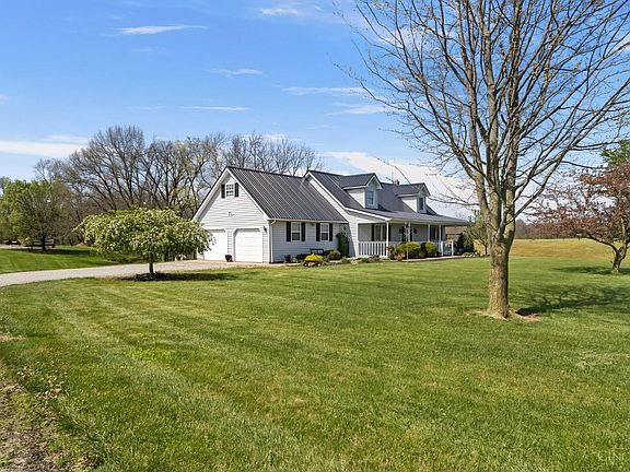 Welcome to your picturesque retreat! Nestled in country, this spacious 4-bedroom, 2-bathroom home offers the perfect blend of charm & functionality. Step inside to discover a thoughtfully designed interior featuring a full unfinished basement w/ a convenient walkout, providing endless possibilities for customization & expansion to suit your unique needs & preferences. Relax & unwind on the inviting covered front porch, perfect for enjoying your morning coffee or soaking in the tranquility of the surroundings. Entertain guests or simply bask in the beauty of nature on the expansive back deck, offering ample space for outdoor gatherings & leisurely activities. Additional room above garage could be a home office, recreation room, or additional bedroom. Recent upgrades including a new metal roof & HVAC system ensure both durability & energy efficiency, providing peace of mind for years to come. 2 pole barns on the property (30x48, 38x40), there's plenty of room for storage & workshop space