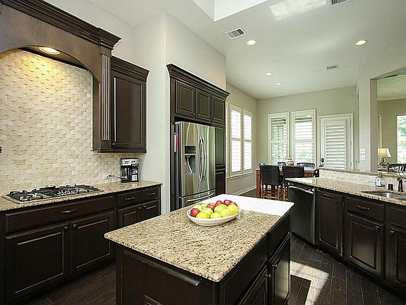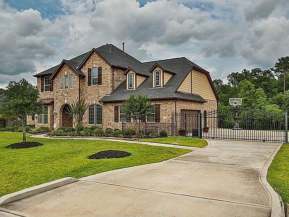 Quiet neighborhood with easy access to I45. This wonderful house sits on over a half acre with a green belt in the backyard. Huge gated driveway with a three car extended garage. Great outdoor covered patio with fireplace and outdoor kitchen. Media room upstairs will make you feel like you have your own movie theater. Master bedroom has massive double closets with a separate water closet. Jetted bath tub perfect for relaxing and a separate shower. Wide-plank wood floors run throughout the main floor. Tons of upgrades in this house that you just have to see!