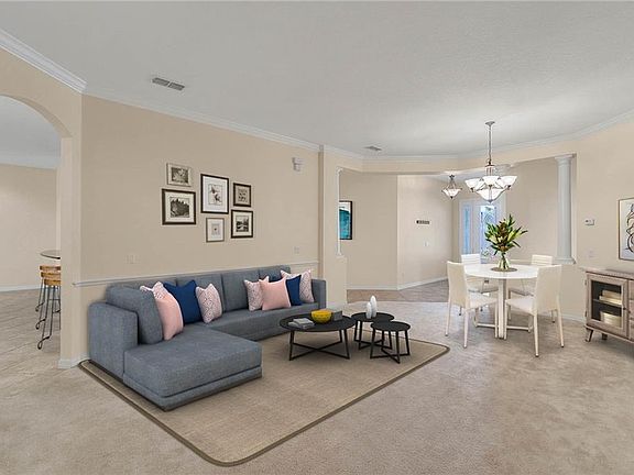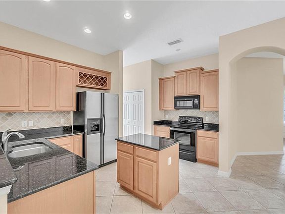 Come check out this beautiful and spacious 4 bedroom one level home in Providence with a well thought out floorplan. Sitting on a corner lot with great curb appeal, you'll first be impressed by the brick paver driveway and patio complemented with stone veneer columns. Upon entering, a living and dining room enhanced with columns and crown molding will greet you. The Kitchen is spacious - featuring an island, breakfast bar, 42" wood cabinets, built in wine rack, and stone backsplash. Appointed perfectly, the breakfast nook looks out onto the huge screened in patio. Open and flowing from the Kitchen, tile floors run throughout the family room. No matter where you are in the home, sliding glass doors will lead you to the screened in lanai, the perfect place for entertaining, relaxing and enjoying the Florida lifestyle. The Master Suite features sliding glass doors to the lanai, double vanities, separate garden tub, large shower and a walk-in closet. The second full bathroom features a double vanity as well. Secondary bedrooms are very spacious, and the fourth could serve as a perfect guest room or even an office. This home also features a large laundry room equipped with a separate sink. All appliances including washer and dryer are included. Providence has an excellent location to major roads, attractions, restaurants, and "A" rated schools. Just a short distance to Publix and new area developments. This home is ready for you to make your own, don't miss out!