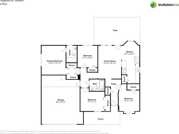 Home Features and Amenities: Air Conditioning, Fenced Yard, Garage, Granite Countertops, Long Lease Terms, Luxury Vinyl Plank, Patio, Pet Friendly, Primary Bedroom on Main, Recessed Lighting, Single Story House, Smart Home, Stainless Steel Appliances, Tile, W/D Hookups, and professionally managed by Invitation Homes.