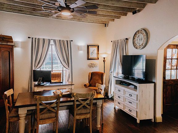 Charming wraparound porchHardwood floorsFenced corner lotSpacious patioDetailed ceilings