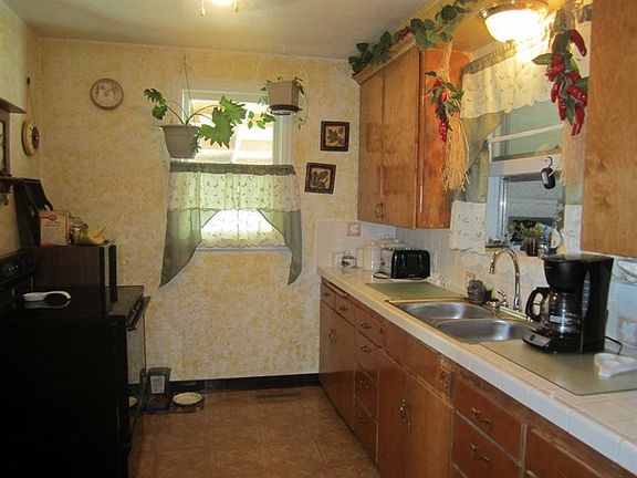 Very clean and well maintained. New windows & door. Single attached garage & detached garage off paved alley with additional storage area. Fenced private backyard, enclosed patio off back of house adds additional living space. Hardwood floors, dining area & nice kitchen. Stove & fridge included. Vinyl sided. Very Nice Home!